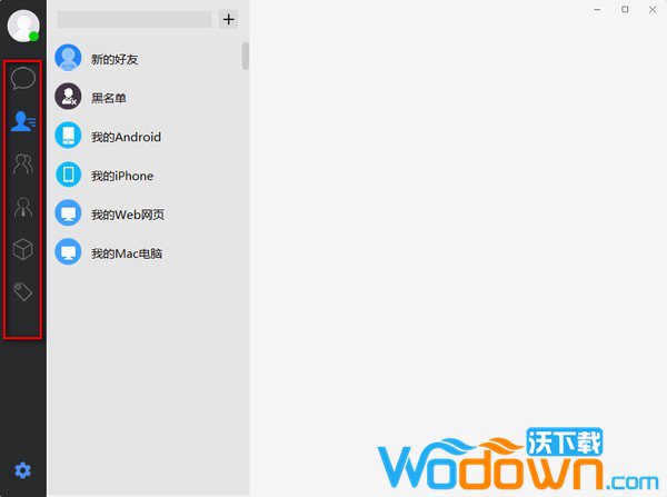 1.下载安装哗聊,在最左侧的工具栏分别是,聊天,好友,群组,重要联系人,收藏和便签
