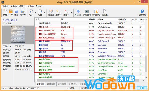 MagicEXIF是一个专业的照片EXIF元数据编辑器,可以从 JPEG/EXI/TIFF/RAW 等数十种文件格式中读取超过 1500 个包括 GPS 在内的标准和非标准 EXIF 项目。并且对这些项目进行修改和保存操作