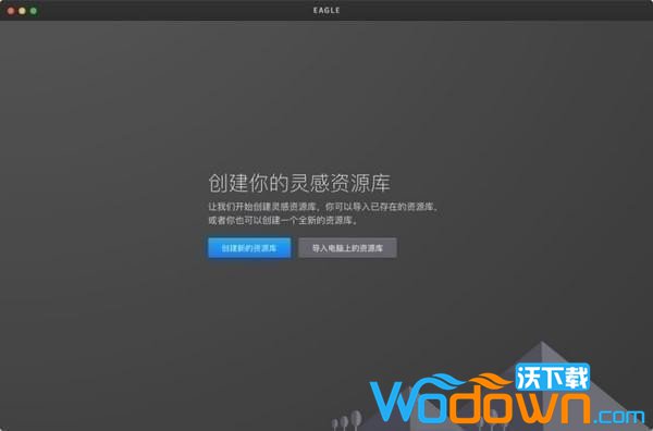 初次使用 Eagle 画面,可以点击左侧按钮建立资源库