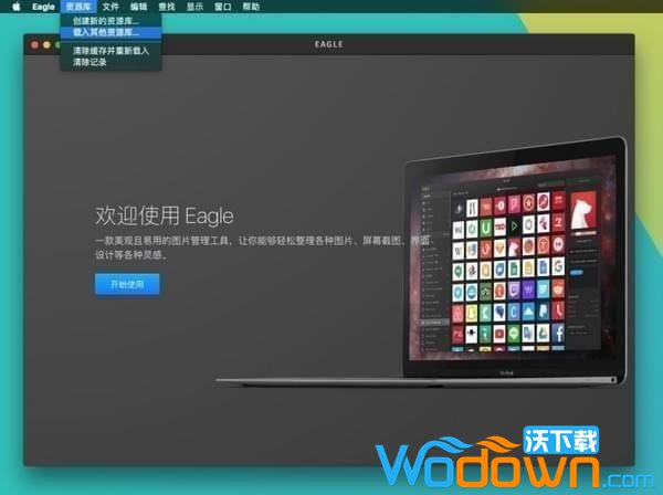如何创建资源库(Library)什么是资源库?资源库是 Eagle 储存图片的主要方式,你可以把资源库想像成一本「相簿」,我们可以将不同类型的图片,分别存放在对应的相簿中,不同于电脑文件夹,每一个 Eagle 资源库是互相独立的,拥有各自的「文件夹、标签、图片」等资讯,不会互相影响。举例来说就是说我们不会在一个收藏「平面设计」的资源库中,被另一个「建筑设计」的资源库影响。创建资源库第一次使用软件时,你会看到下面这个画面,如果你是第一次使用这个产品,可以点击「开始使用」建立你第一个资源库,如果你电脑中已经存在资源库,你可以点击「导入电脑上的资源库」进行载入的动作,如下图所示: