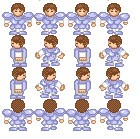 用途:用于某些UI动画设计(非网页)、游戏动作设计的场景。能够让设计者看到动画是否流畅。有些软件(或者游戏)的动画元素采用的不是用函数或者命令绘制,而是采用类似于贴图的效果(例如魔塔的人物设计)。在动画设计的阶段,需要对元素的每一帧动画进行分别地设计,然后才会把这些png的半透明贴图放在一个文件上(见下图)。