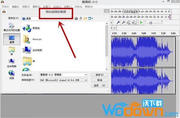 7、点击了导出选择的音频后,在对话框中更改剪辑了之后音频的文件名,如图所示: