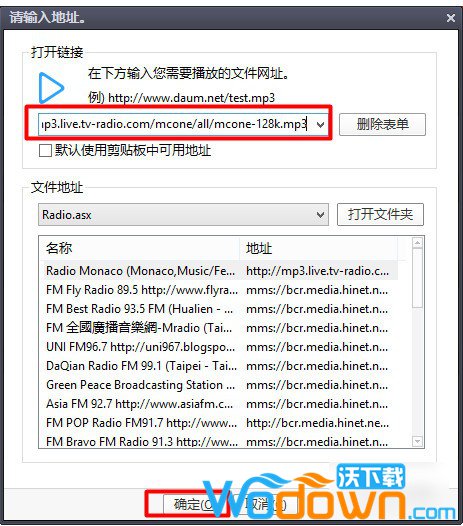 右击播放器窗口,从弹出的右键菜单中依次选择打开项,此时将展开打开子菜单项,从中选择相应的子项即可实现视频的播放操作。如图所示,当我们选择打开链接项时,将弹出如图所示的窗口,在此直接粘贴要播放的视频文件地址,点击确定即可进行在线视频观看操作。