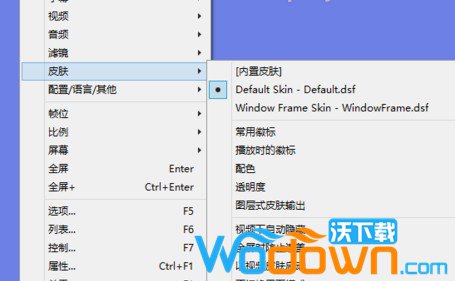 播放器皮肤的更改:右击播放器窗口,在弹出的扩展菜单中选择皮肤项,就可以从其扩展面板中使用其它皮肤啦。
