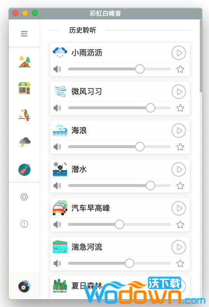 新增加历史聆听功能不断收听新的内容,忘了之前喜欢的白噪音,可以从历史聆听中找到以前收听的内容。