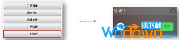 4. 直播前最好进行一次连线的调试,步骤不正常连线一样点击直播助手中左侧按钮【开启连线】,在右侧界面选择相应听众进行连线