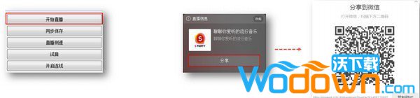 调试完成后,点击【开始直播】,并且在右侧的直播信息中,点击【分享】,分享你的直播间