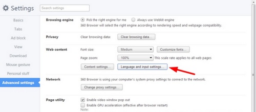 1.点击右上角的扳手图标,选择&settings&,进入设置界面,然后点击&advanced settings&,再点击【language and iput settings】按钮。