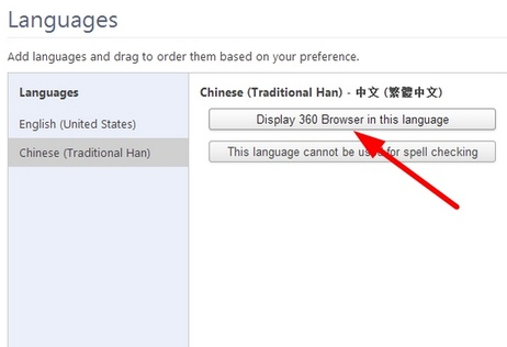 3.在中文(繁体中文)语言下,点击【display 360 browser in this language】按钮。