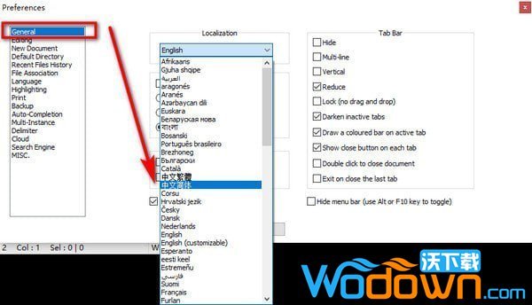 3、General选项-选择中文简体。