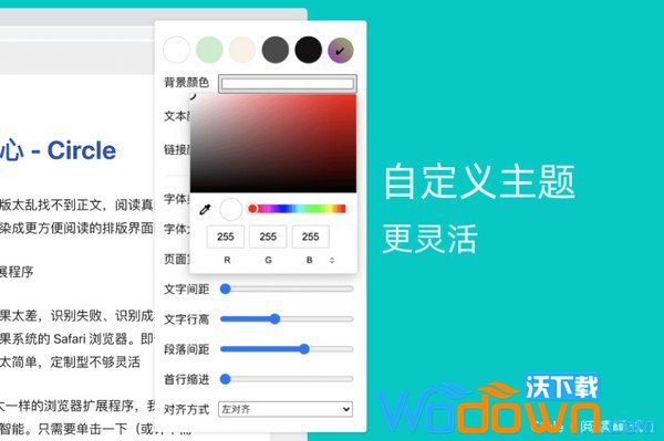 Circle(阅读模式) 内置了 5 款主题更灵活的自定义主题正如莎士比亚说的 一千个观众眼中有一千个哈姆雷特 不同的人有不同的阅读喜好,内置的主题做不到让所有人都喜欢,所以我们支持自定义。如下图所示: