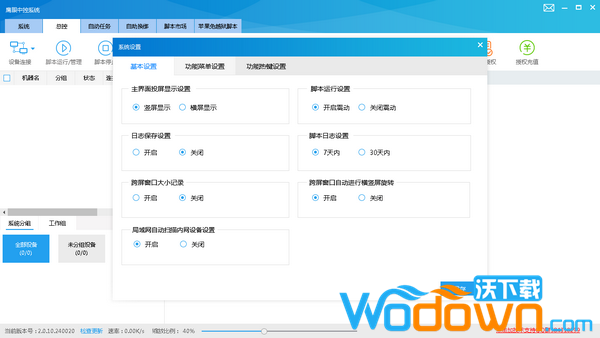批量管理设备批量管理几十台至上千台设备,可自定义设备名称及设备分组管理跨屏操作手机通过鼠标/键盘操作手机,可实现滑动、点击、文字输入操作多功能快捷操作设备快捷操作,一键重启、关机、解锁、结束进程、开关飞行模式等文件批量传输文件批量导入,单设备文件导入、导出、删除及txt文件直接查看实时投屏监控、一键截图实时投屏,可自定义投屏大小、横/竖屏显示及投屏清晰度,支持一键屏幕截图脚本运行管理、日志监控批量运行/停止脚本,实时脚本日志监控;自定义脚本任务,可定时、循环、开机运行脚本等手机应用管理键安装app、批量卸载应用、清理应用缓存等手机相册管理支持导入照片/视频至手机相册及一键清理相册