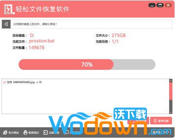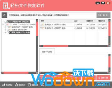 轻松文件恢复软件是一款高性能的硬盘文件恢复软件,采用最新的数据扫描引擎,从磁盘底层读出原始的扇区数据,经过高级的数据分析算法,把丢失的目录和文件在内存中重建出原分区和原来的目录结构,数据恢复的效果非常好。可以恢复被删除或者格式化或者分区丢失的数据,支持IDE/SCSI/SATA及USB移动硬盘/SD卡/U盘/RAID磁盘等多种存贮介质,支持FAT/FAT32/NTFS/exFAT等Windows操作系统常用的文件系统格式,支持Word/ Excel/ PowerPoint/ AutoCad/ CoreDraw/ PhotoShop/ JPG/ AVI/ MPG/ MP4/ 3GP/ RMVB/ PDF/ WAV/ ZIP/ rar/ X3F/ LXE/ FLV/ RAF/ Visio VSD等多种文件的恢复。操作简单,向导式的界面让您无需了解数据恢复深层复杂的知识也可以轻松恢复出丢失的文件数据。本软件扫描速度很快,目录结构恢复较好,对中文目录文件名称完美兼容,是一款十分有效的文件恢复工具。