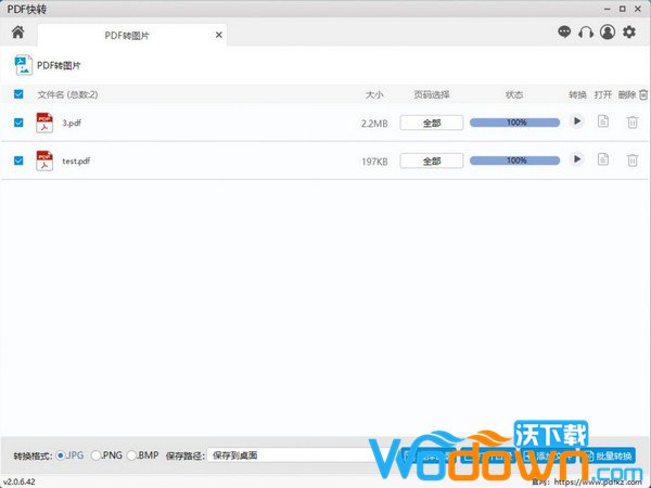 5、等待转换器将PDF转换成图片文件的进度到100%后,说明PDF文件成功转换成图片格式的文件。此时,点击打开图标按钮或点击打开目录按钮,即可查看转换后的图片文件。6、PDF转成图片文件的操作步骤到此已完成。如何使用软件将PDF文件转成Word文件?1、点击主界面的pdf转word 图标按钮,打开PDF转Word功能的转换器界面,如下图示: