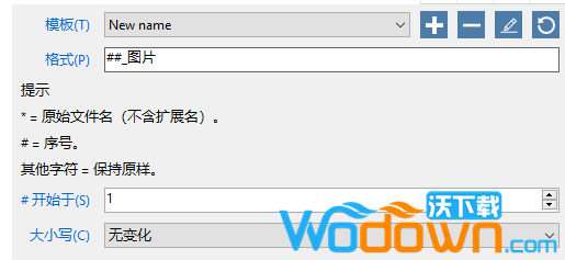 定制名称格式除了它规定的特殊符号,#代表添加的序号,#的个数代表位数,*代表原文件名,其它的字符都会做保留,在右边可以看到效果。