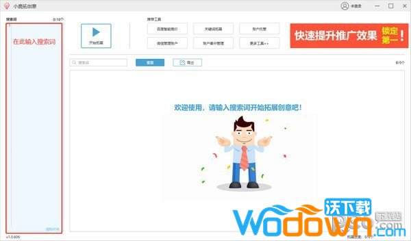 1、小鹿拓创意工具提供关键词创意设置,可以生成新的词语2、你可以将关键词输入到软件,软件自动分析创意的内容3、自动对词语扩展,从而得到几十个,几百个新的词语4、软件会收集网上的关键词显示在软件,可以参考其他网站设置关键词取名5、例如可以在自己的商品取名, 直接在软件复制喜欢的名字6、例如可以为自己企业推广,将企业类型输入到软件获取关键词7、通过这款小鹿拓创意工具收集关键词,可以方便用户推广
