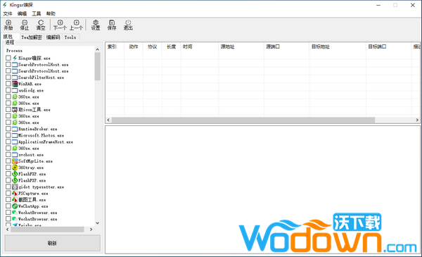 KingsrSniffer是一款网络抓包分析软件。其原理是使用RawSocket进行抓包,raw socket,即原始套接字,可以接收本机网卡上的数据帧或者数据包,对于监 听网络的流量和分析是很有作用的。经过测试,RawSocket可以抓取所有使用IP协议(包括TCP,UDP,IMCP)软件。同时将一些常用操作集成在了软件中。