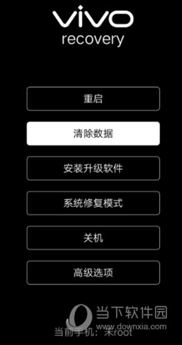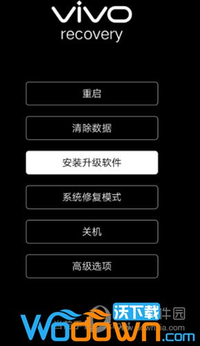 一、刷固件前建议您可以先清除手机中所有数据,以保证刷机不被异常数据影响。1、关机状态下同时按住电源键和音量上键,直到出现vivo的字样再松开,手机自动进入recovery模式(部分机型手机需按音量键手动选择进入recovery模式)。