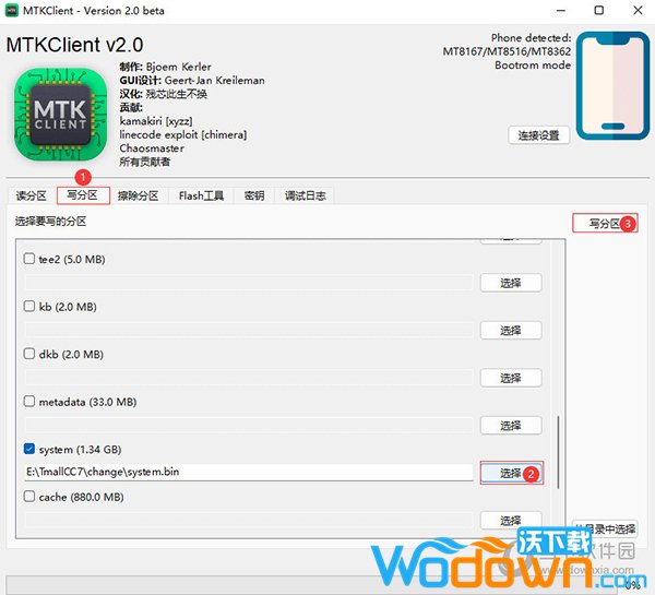 选择Magisk-v25.2,点击修补boot镜像,修补完成后在软件目录下会生成new-boot.img文件,将文件重命名为boot.bin和上面打包好的system.bin放到一起待用。8、写入system和boot分区打开MTKClient点击写分区,找到system一排的选择,点击选择改好的system.bin文件,点击右上角的写分区,等待完成