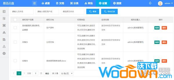 权限管控九级细分权限,严谨的权限体系,简单的权限配置协同分享通过共享、订阅、在线编辑等多种方式进行协同办公版本管理记录变更过程和历史版本,解决文档版本繁杂等问题在线编辑预览强大的文档编辑预览器,实现在线编辑预览功能流程审批灵活定义审批流程,实现多场景的审批功能全文检索关键词全文检索,毫秒级查找所需文件,支持二次检索操作日志审计全面记录操作日志,避免推诿,降低因此产生的矛盾数据备份多重安全防丢保障机制,满足企业资料备份需求