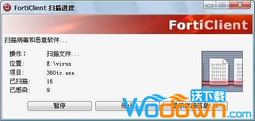 下图为笔者选择使用飞塔自定义扫描扫描位于本机E盘的一个病毒样本,由于笔者使用很很多杀毒软件,感觉飞塔的扫描速度相对而言慢了点,不过还行,不属于龟速的那种。