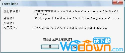 实测发现,飞塔可以监控系统注册表中的关键字段,如果这些关键字段被修改,那么飞塔会主动弹出相应的提示信息,在得到用户的授权下进行放行或者禁止运行,从而起到很好的防范作用。