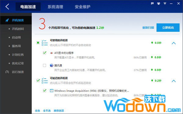 电脑加速是通过禁用或延迟启用开机项达到开机加速的效果,同时提供默认的高速模式和可选的极速模式提升电脑运行速度;