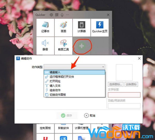 快捷面板上方为固定面板,可以添加、移动、删除上面的快捷方式,下方为可以根据当前激活窗口不同而显示出不同的动态面板。在自定义动作方面,固定面板支持以下类别:键盘输入(组合快捷键、文本、延时等待)运行程序/打开文件(管理员运行、参数)打开网址输入文本以及上述几种的组合应用