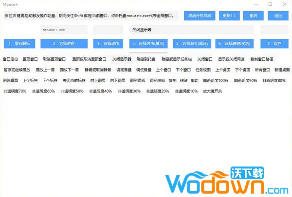 Mouse+是一个鼠标增强工具,按住鼠标右键并拖动,自定义触发功能,支持且不限于关闭显示器、上个桌面、百度搜索、隐藏到托盘等功能!