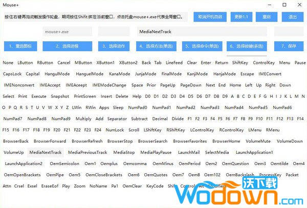 可以自己输入命令5、选择按键,如MediaNextTrack播放下一首的多媒体按键可以自己组合不同的快捷键注意!Shift键是LShiftKey,Ctrl键是LControlKey,Alt键是LMenu,开始菜单键是LWin,详情可以百度C# Keys类。组合键里写Shift、Control、和Alt是无效的,因为目前只是简单地按微软Keys类枚举自动遍历的。