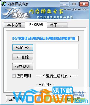 2、在优化规则栏目中设置的是需要添加的白名单进程,比如一些大型游戏、大型软件等进程,这样当释放的时候不会把它们的资源给错误释放了,具体的进程名大家可以通过按Ctrl+Alt+Delete,调出任务管理器,选择进程查看,如下图所示:
